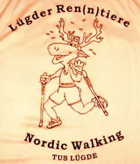 ![]() Die ausgebildeten Übungsleiterinnen Beate Flore und Getrud Ostermann und ihre Mitarbeiterinnen sind ein gemütlicher und lustiger Haufen. Sie verstehen viel Spaß wie man am obigen Erkennungssymbol auf dem T-Shirt erkennen kann. Auf dem Übungsprogramm stehen neben Nordicwalking auch andere Aktivitäten wie z. B. eine schöne Winterwanderung oder einfach mal ein gemütliches Beisammensein. Weiterhin nehmen die Nordicwalker auch an Wettkämpfen teil mit recht guten Ergebnissen und natürlich nur die, die sowohl Lust als auch die Zeit haben. Zum hauptfeld gehören da der Lügder Osterberglauf, die Lippe-Serie und der Bad Pyrmonter Brunnenlauf. Wer Lust hat, einmal reinzuschnuppern nur zu! Stöcke können ausgeliehen werden (bitte vorher anmelden um die richtige Stocklänge klären zu können). Trainiert wird zweimal die Wche zu festen Zeiten: Dienstags um 19 Uhr trifft man sich am Ramberg, Donnerstags variiert es, ebenfalls um 19 Uhr entweder am Ramberg, oder auf dem Parkplatz des Kindergartens in der Waldstraße. Nach einer gründlichen Einführung in die Technik starten die Anfänger mit einer 5-km-Strecke. Wenn sie diese gut beherrschen, erhöhen sich die Strecken stetig. Schon bald stehen auf dem Programm des Nordicwalker Längen von 7,5 km, 10 km und sogar 12,5 km. Und das ist wahrlich kein Spaziergang mit Stöcken sondern ein toller und abwechslungsreicher Ausdauersport, zu dem die Lügder Ren(n)tiere herzlich einladen. |