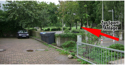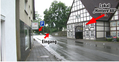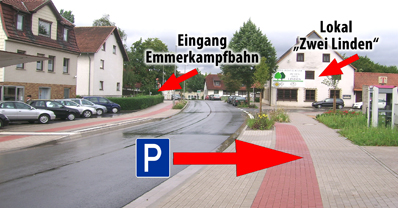 tierungspunkt: Gaststätte Hintere 88. Sportplatz dahinter. Noch ein Stück weiter: die Parkplatzmöglichkeiten am ehemaligen Zwei Linden. |